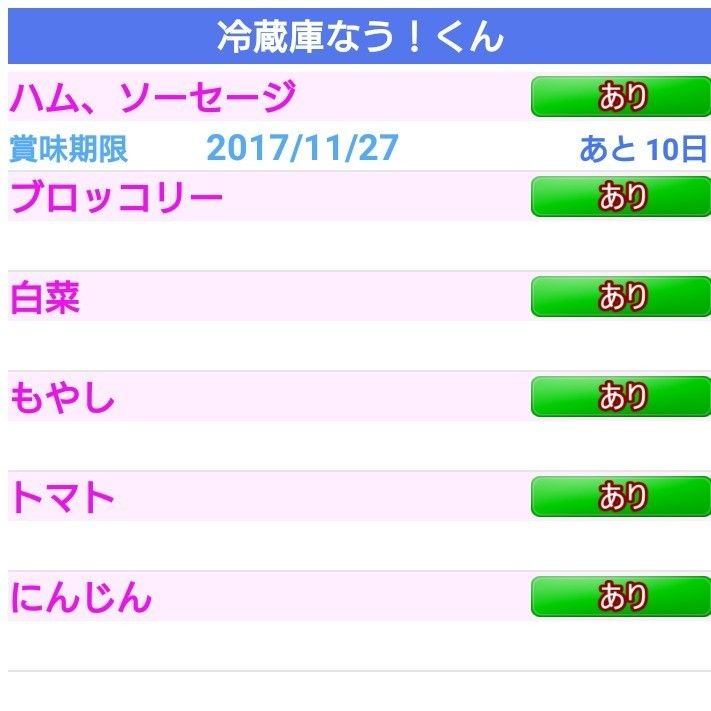 おすすめアプリ②「冷蔵庫なう!くん」 在庫管理がひと目でわかる!