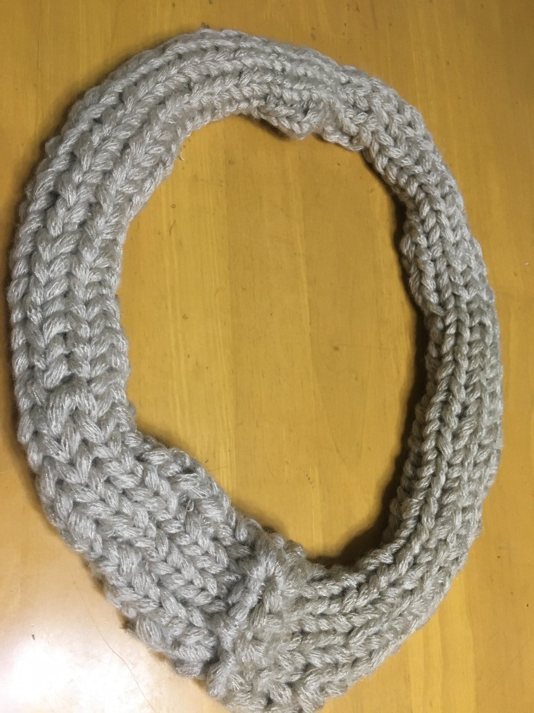 このまま長くしていって最後は繋げるだけ!3玉使いました。最後は下から一目ずつ通して編み終わります。外して馴染ませると、110センチになりました。首に巻く時は、そのまま首にかけたら一度捻ってもう一度首にかけます。