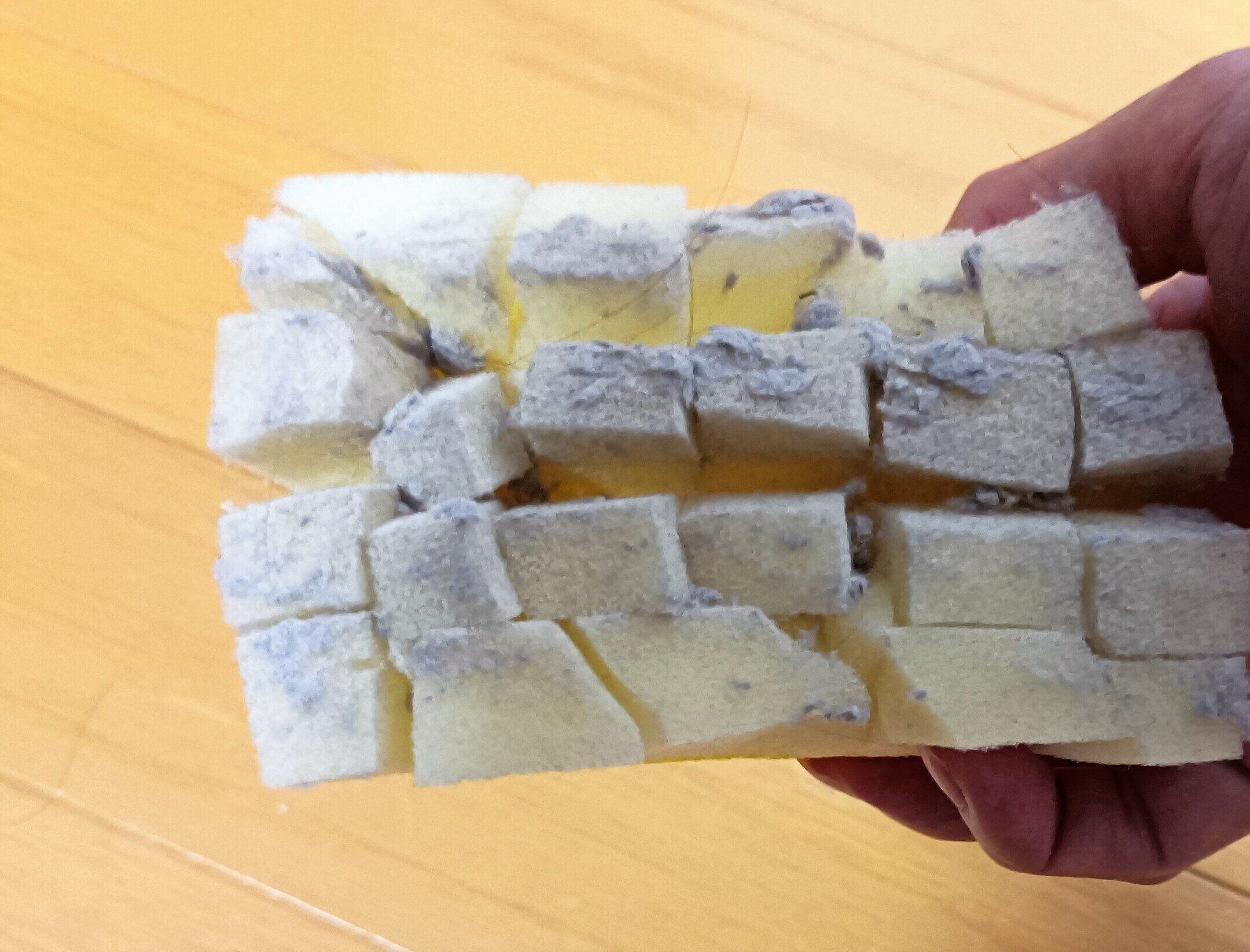 扇風機の掃除で使ったスポンジですが、まだまだホコリを取る力が残っています。