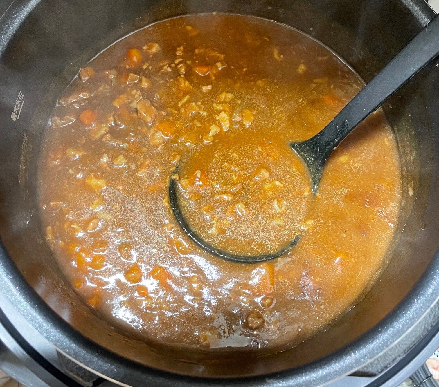 届いてすぐに、まずはカレーをつくってみました。もちろん、材料を切ってボタンを押すだけの自動調理です。最初の料理でいきなり「やっぱりこれはラクかもしれない…」と感じました。