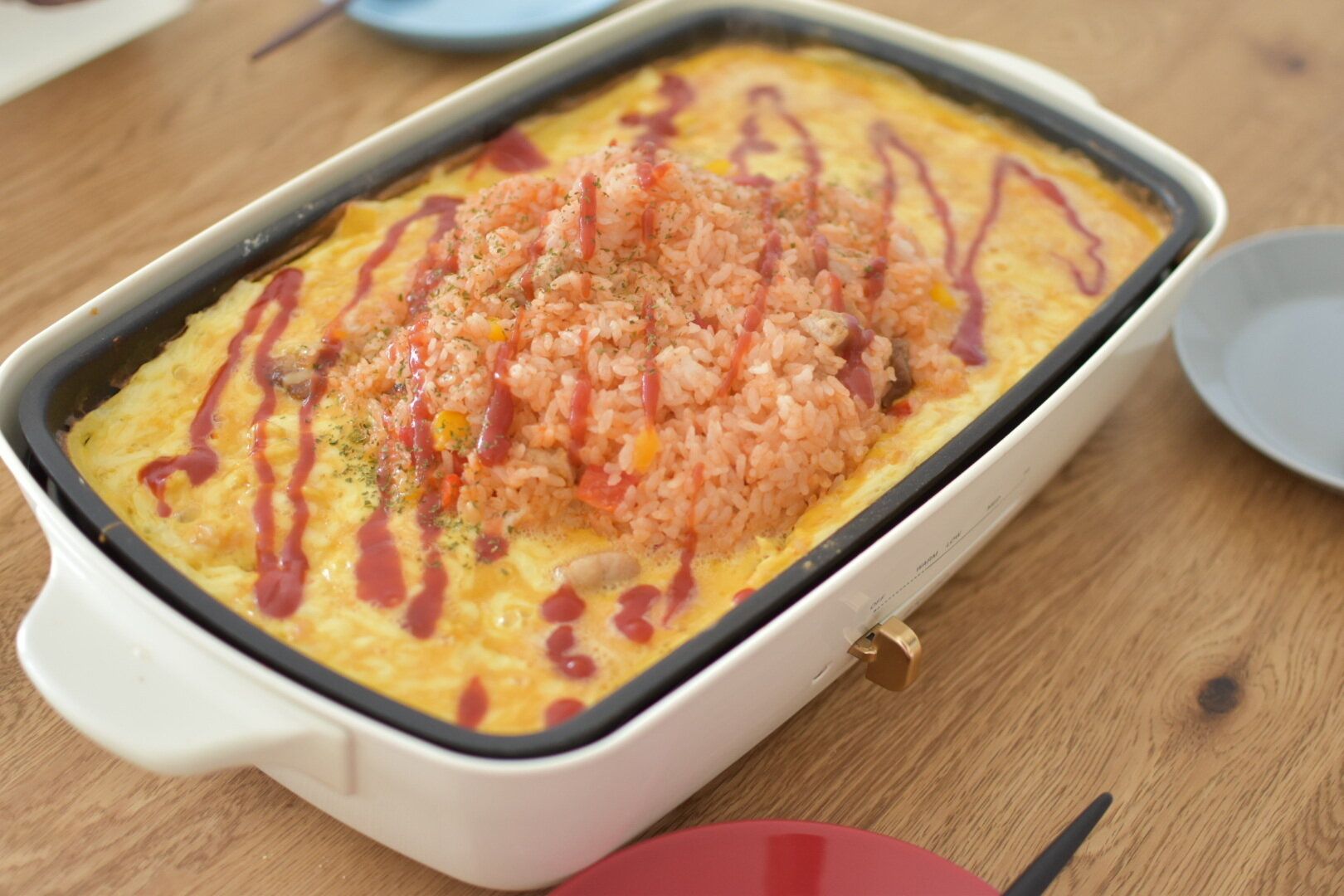 冷凍ご飯がたくさんあればチャーハンやオムライス、無ければ焼きそばやお好み焼きに。家族分を作るのが大変なオムライスもホットプレートがあればまとめて作ることができます。