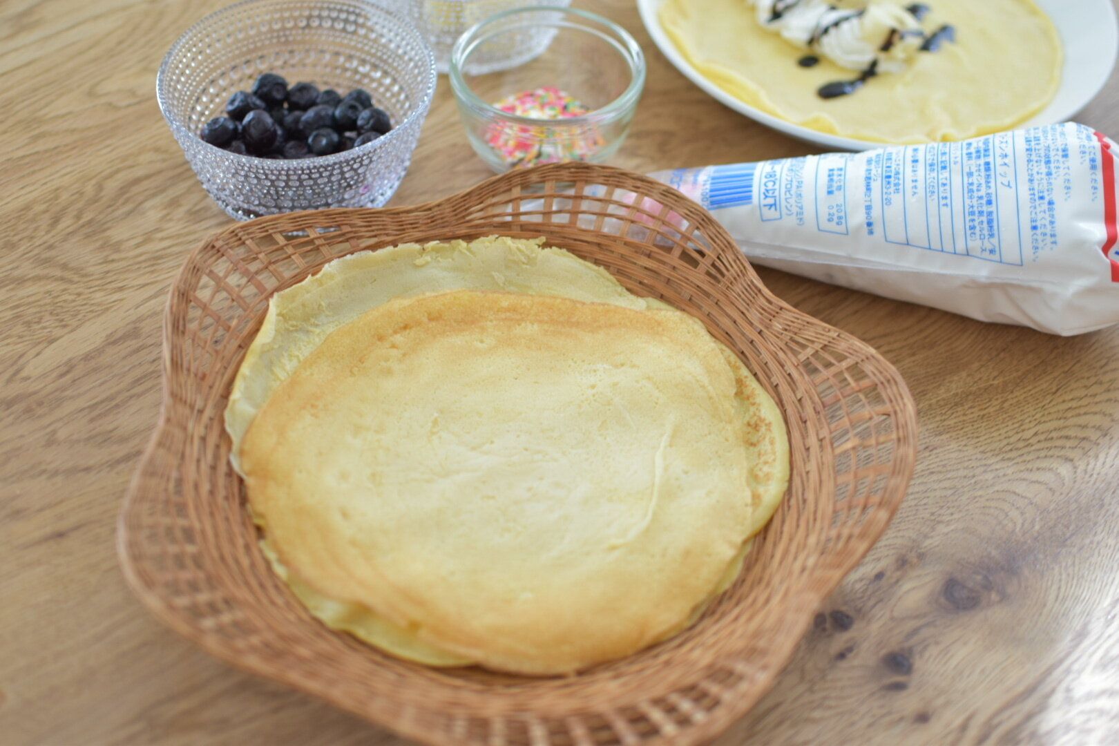 おやつの時間もホットプレートにおまかせ。時間と心に余裕があればクレープ作りも楽しいですよ。好きな具材を好きなだけ包んでいただきます。