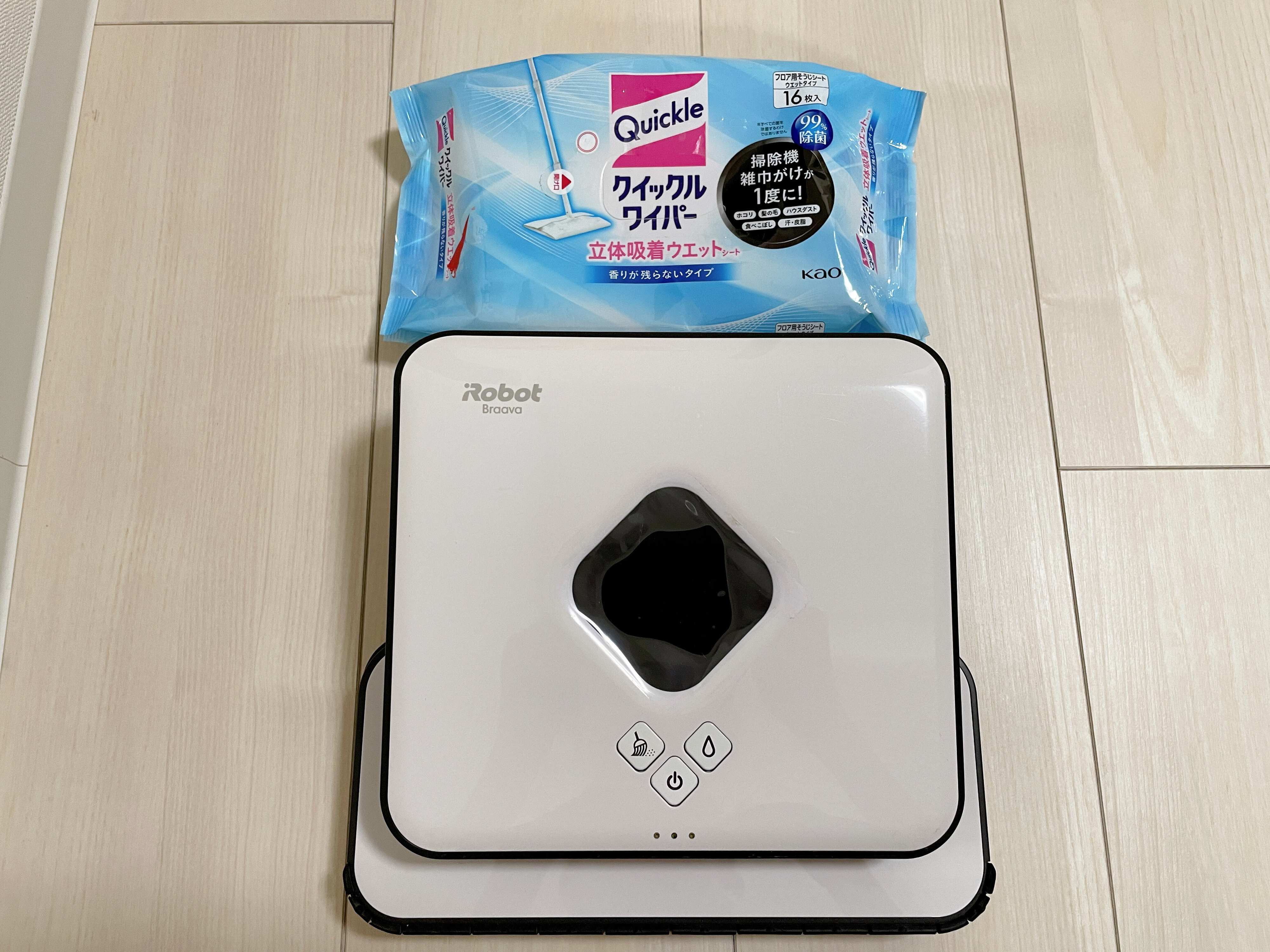 事前に掃除機をかけてから、ブラーバで拭き掃除をした方が床がキレイになりますが、時間が無い日は大変です。