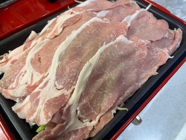 その上にしゃぶしゃぶ用の肉を並べながらのせていきます。