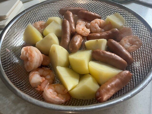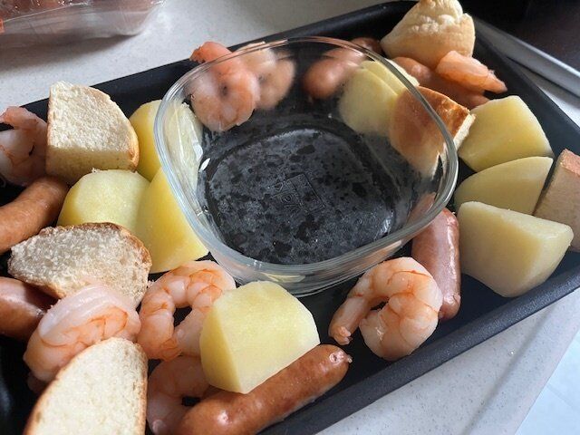 今回はパン、じゃがいも、ウインナー、海老を用意しました。