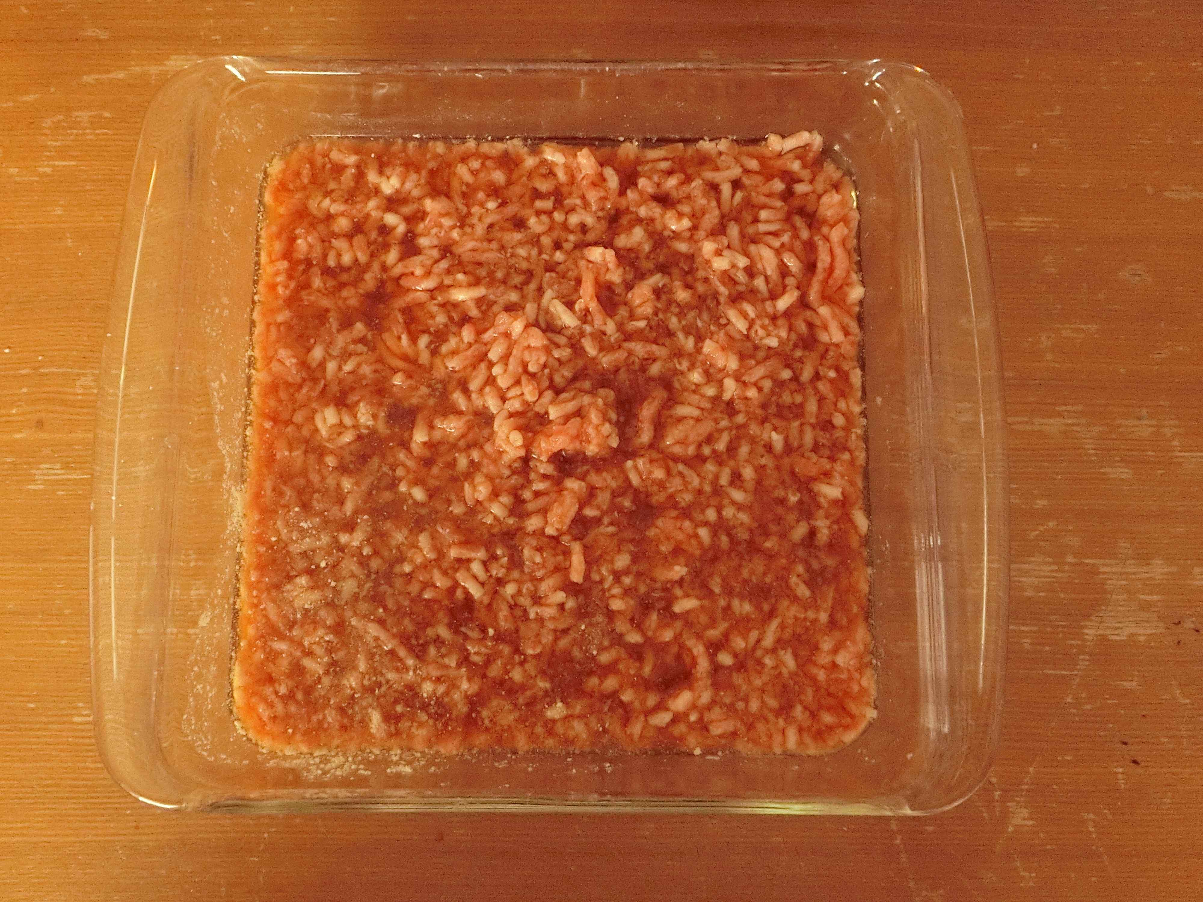 2.耐熱容器に豚ひき肉とAの材料を混ぜ合わせます。ふんわりラップをかけて電子レンジ600Wで3分加熱します。