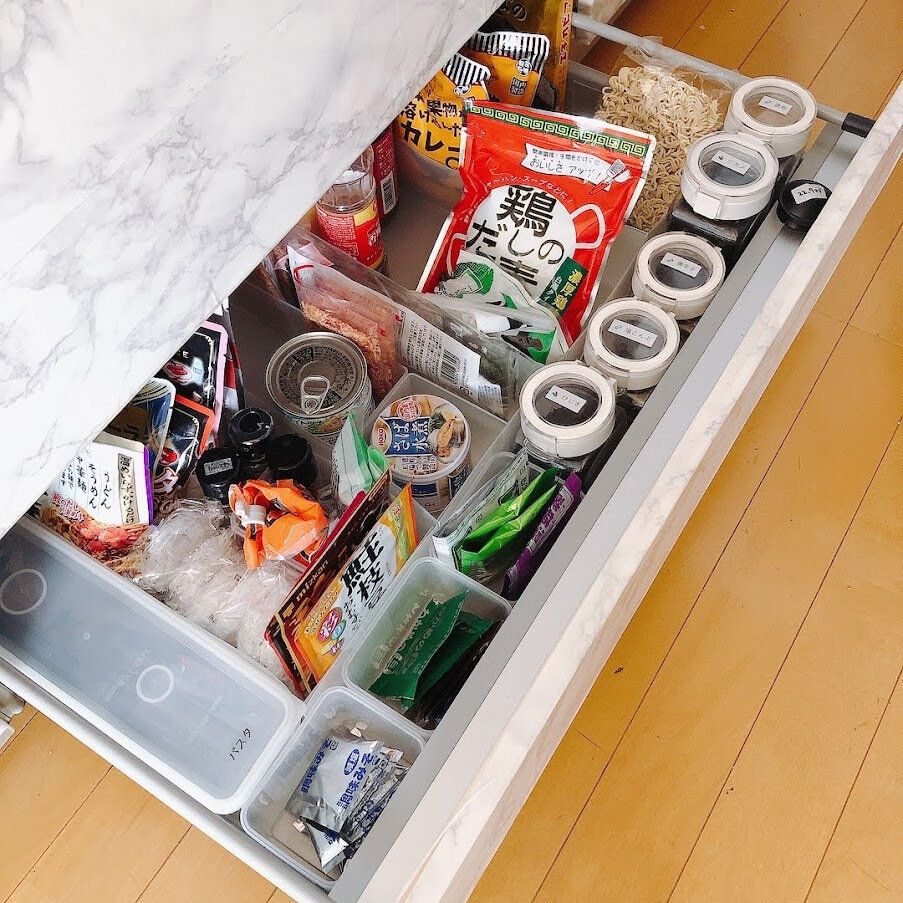 お休みの日のお昼ごはんなどで使っているので、古いものは入っていません。