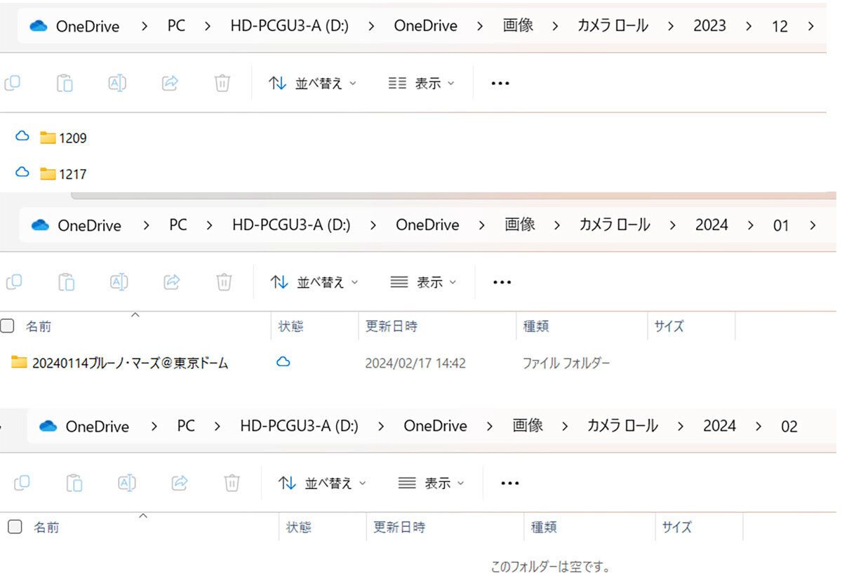 大量の写真が分類されずにフォルダに入っている状態になってしまうのです。