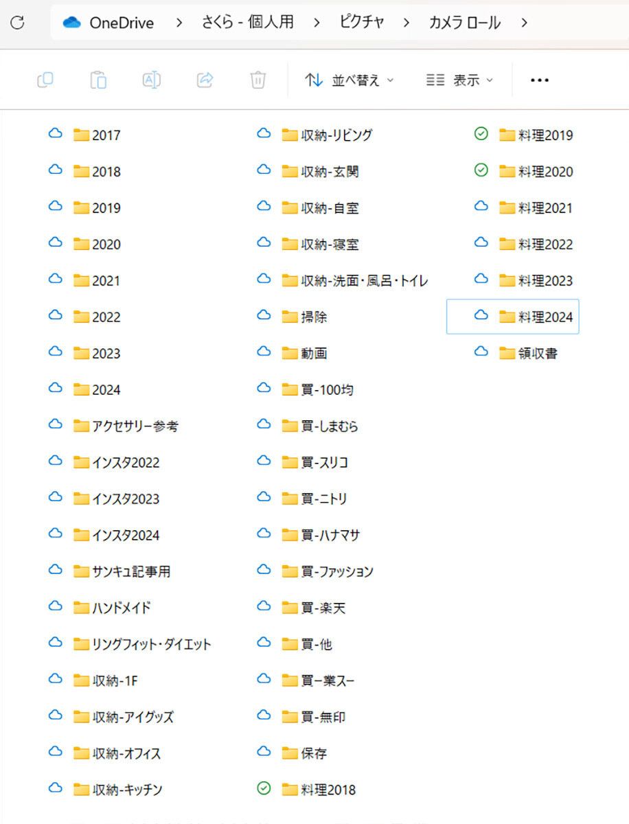 保存しておきたい写真もそれぞれ振り分け、年月のフォルダ内はプライベートで保存しておきたいものだけ残しました。