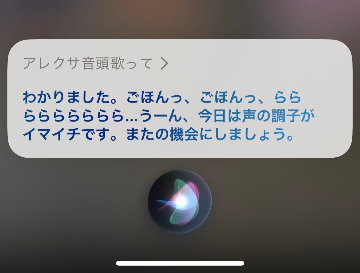 一応、歌い出しそうな様子は見せたSiriですが、声の調子のせいにして、はぐらかします。なんとも人間味のある返答に、親子で大笑いしてしまいました。