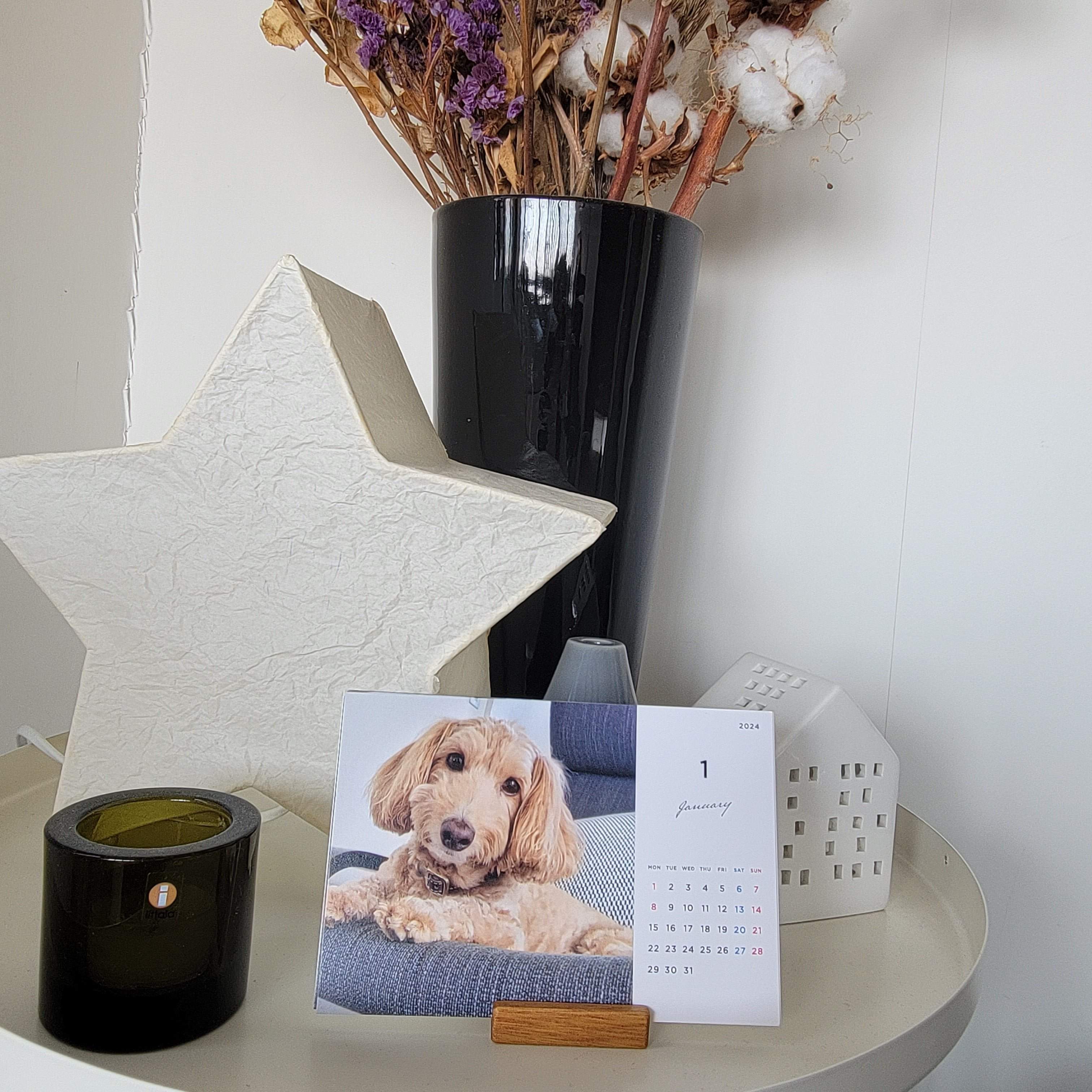 私が作成したカレンダーは卓上木製スタンドカレンダーで、値段も500円からとリーズナブル。