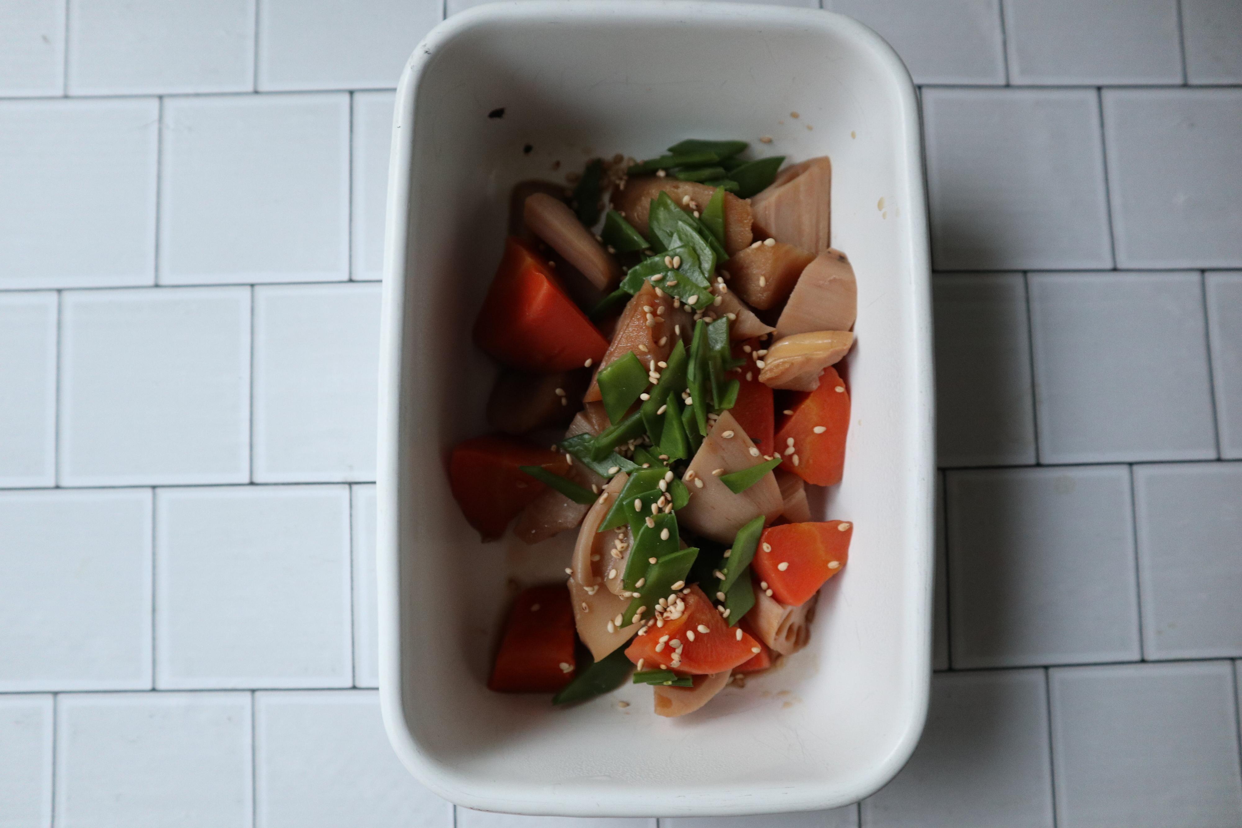 定番にきんぴらを筑前煮用で作ることで、ゴロゴロとした見た目でなんだか可愛い。