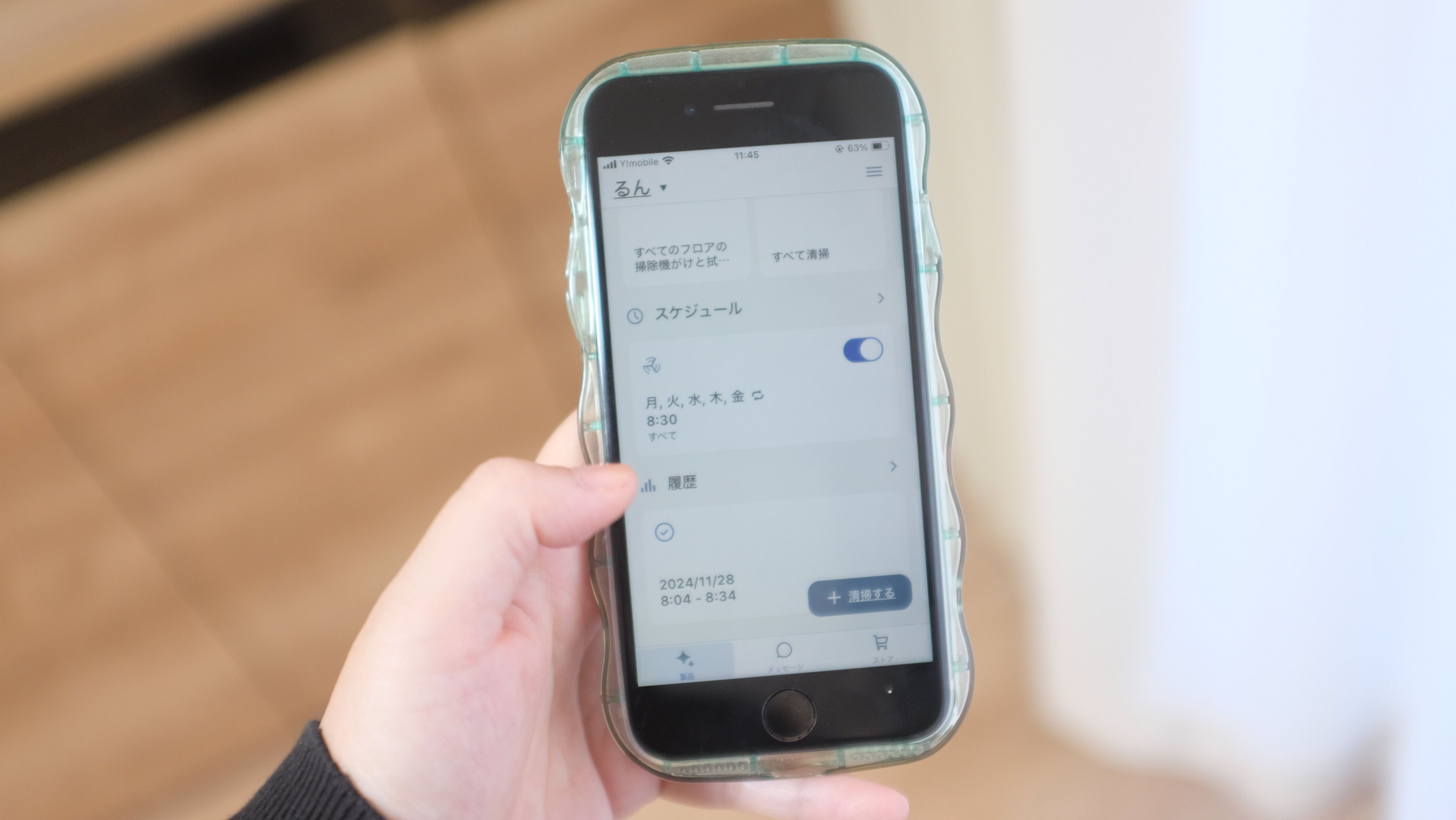 万が一、出かける前にルンバを起動し忘れても、スマホアプリで遠隔操作できるのが本当に便利です。「あっ忘れてた…」という日でも外出先からいつでもどこでも掃除を開始できます。
