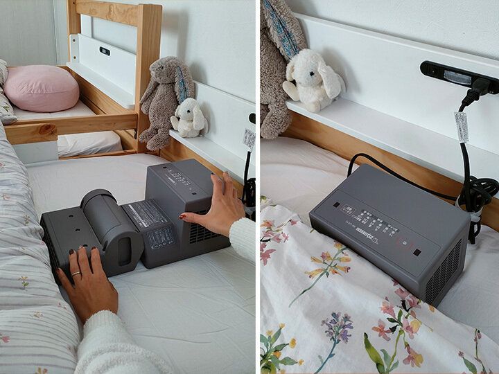 この時期、3人の子どもたちが寝る前に寒そうにしていることも。「象印のふとん乾燥機の『お急ぎコース』なら15分ほどであったか。3人分でも45分でふかふかに。準備や片づけも簡単なので、家事のスキマ時間にできますね! 子どもたちも『あたたかい~』と大喜び。最近、睡眠の重要性、質の大切さをすごく感じているので家族みんなでこれからもふとん乾燥機を活用していきたいです」