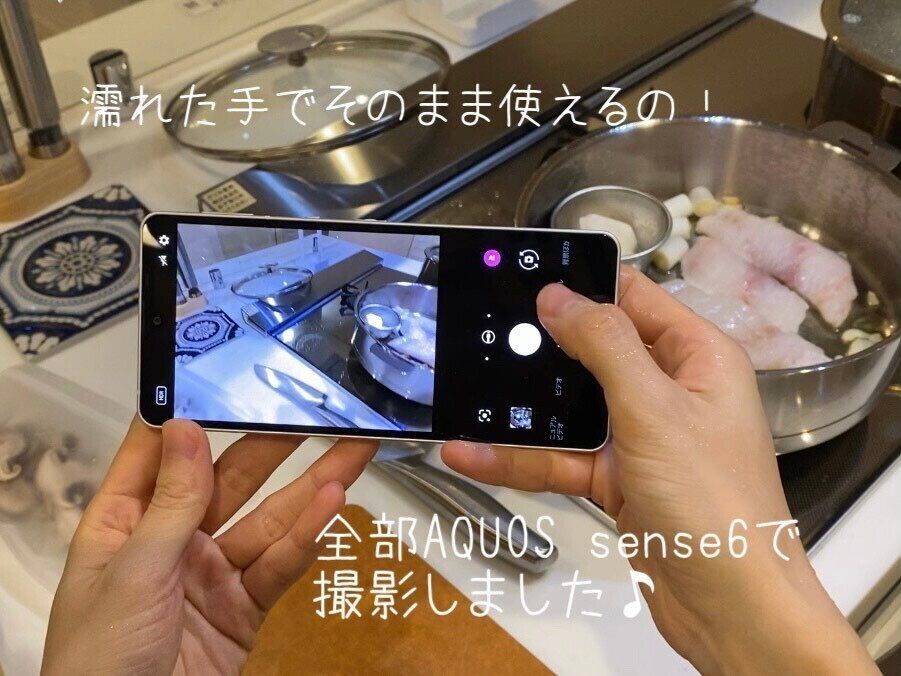 さらに、高性能のディスプレイは濡れた手でもサクッと反応してくれました! お料理中に写真を撮ったり、レシピメモしたりちょこちょこ使うので、スムーズに使える「AQUOS sense6」の使い心地は、かなりよかったです♪ 防水性もあるので、お料理中にも安心して使えました( ˆoˆ )/