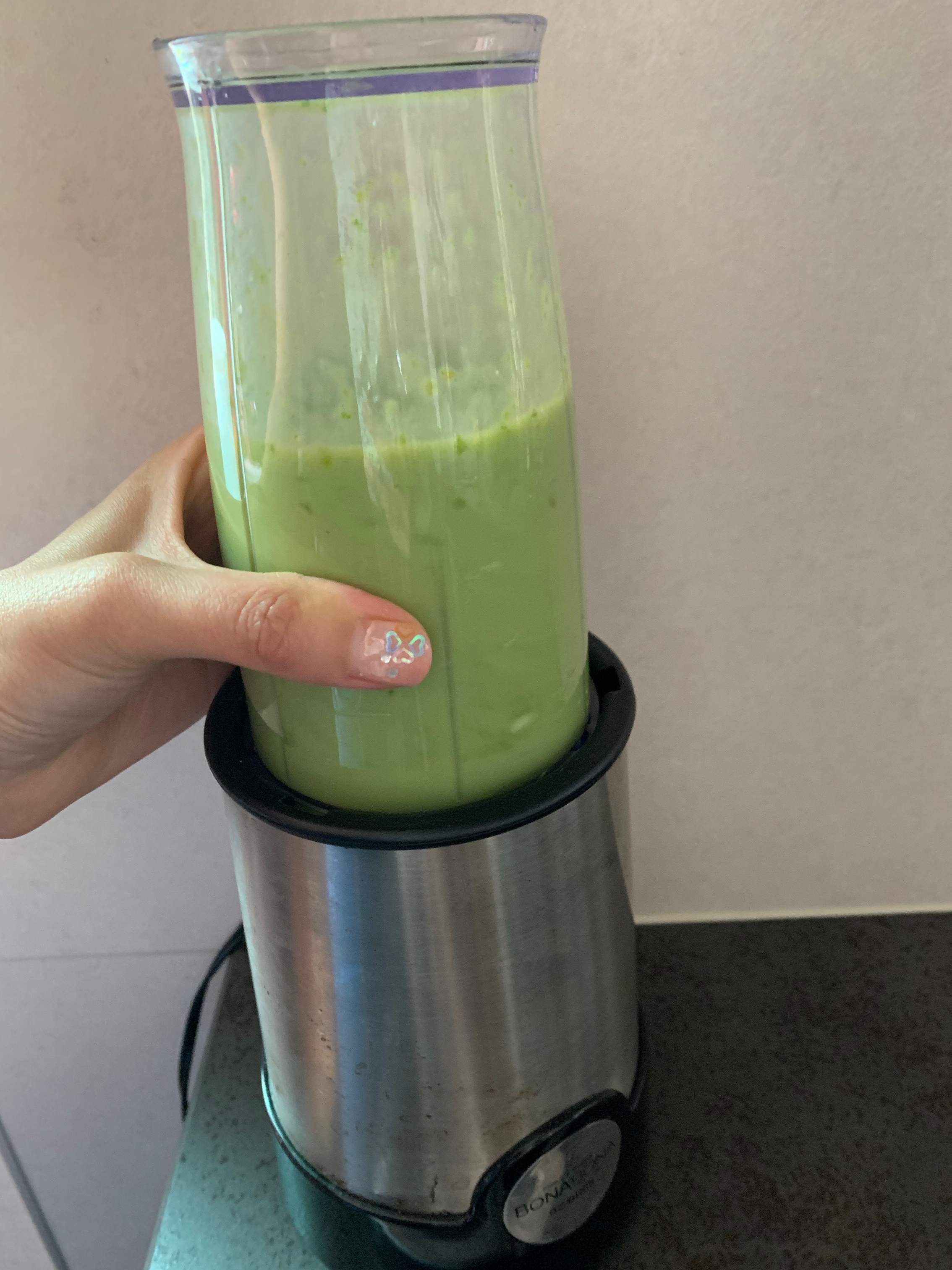 このブレンダーの良いところは、ブレンドしたら、フタを外してそのまま飲めるところ。時短で、洗い物も増えません。