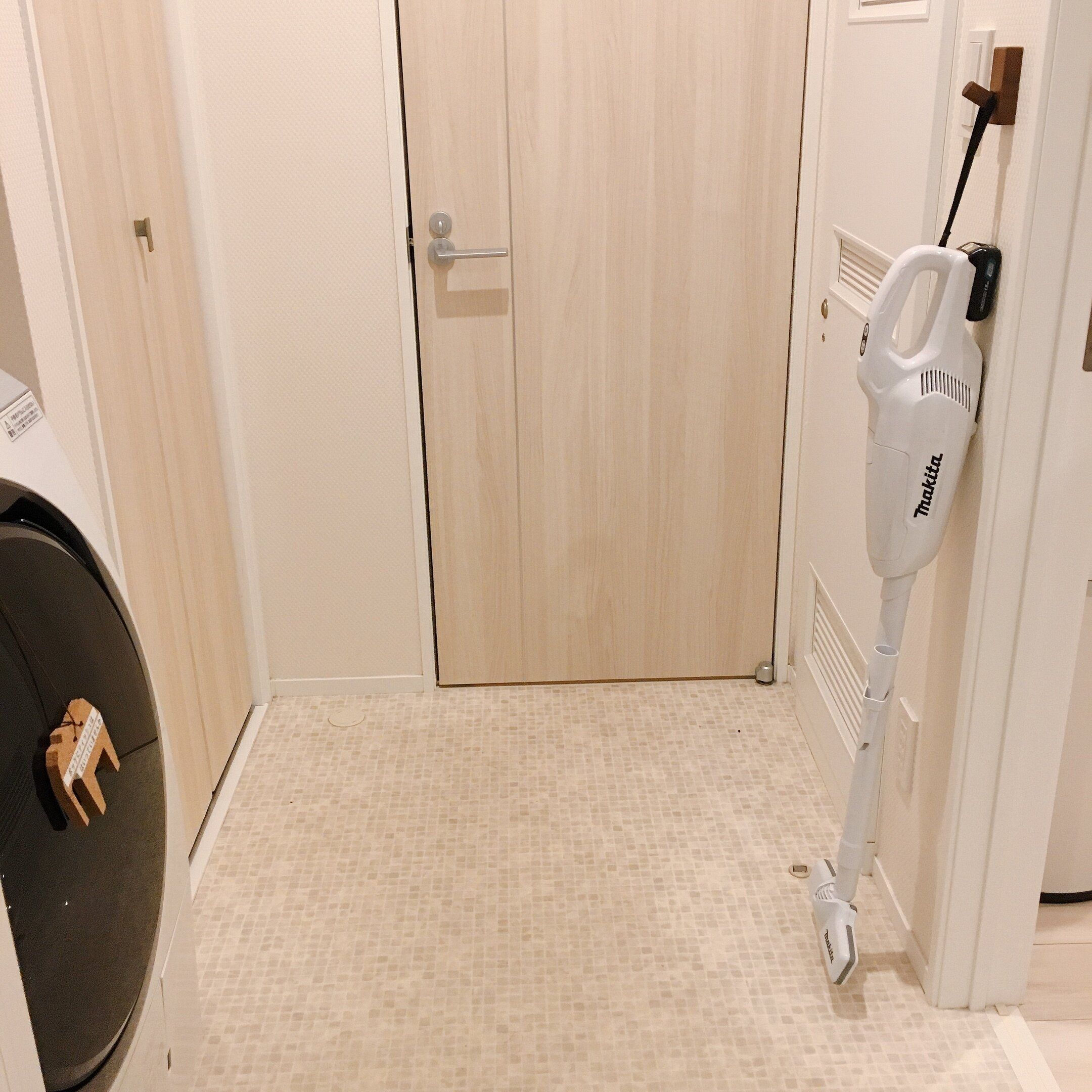 また我が家ではキッチン横のスペースにフックで掃除機をかけているため、掃除機を出す手間もありません。