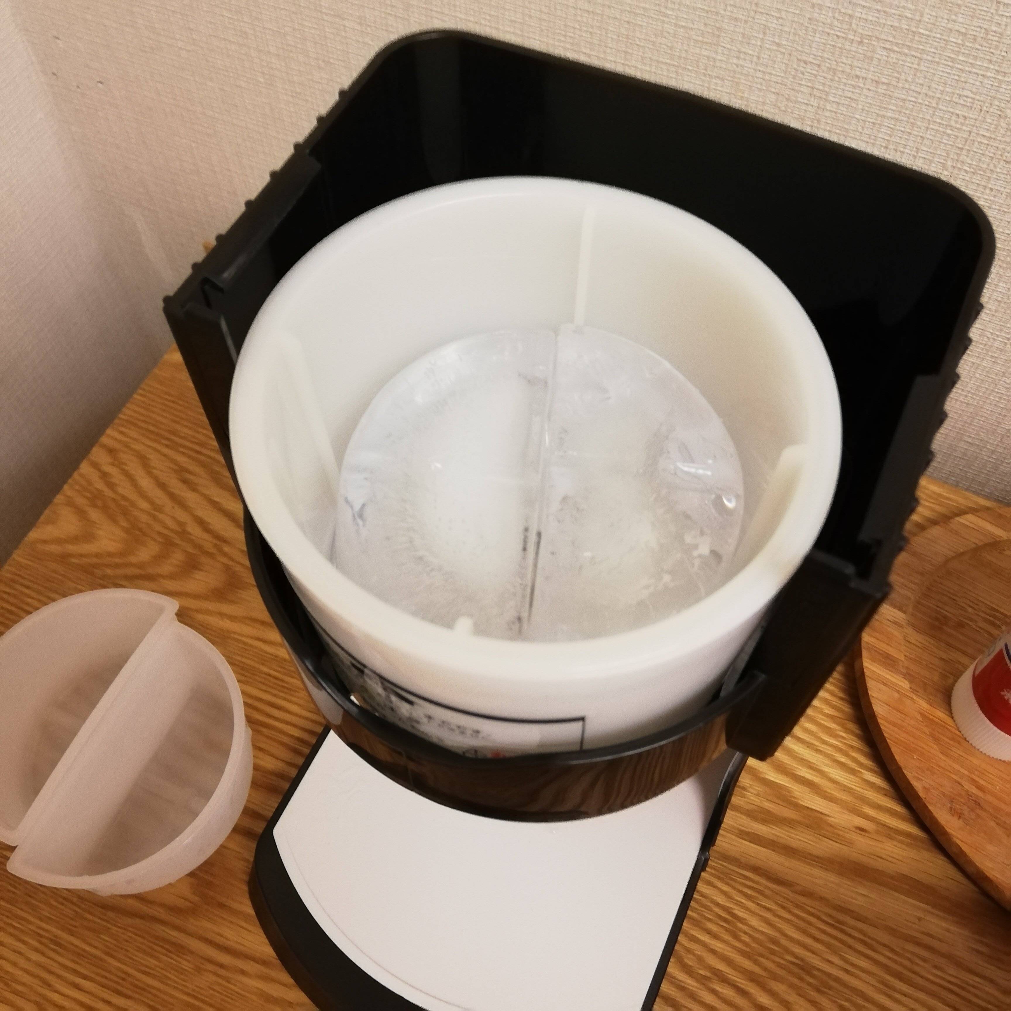 付属の容器で氷をつくり、その氷をセッティングするだけ!