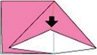 6.三角の袋に上端を押し込む。裏側も同様にする。