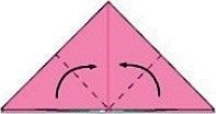 4.真ん中に向けて、点線で折る。裏側も同様にする