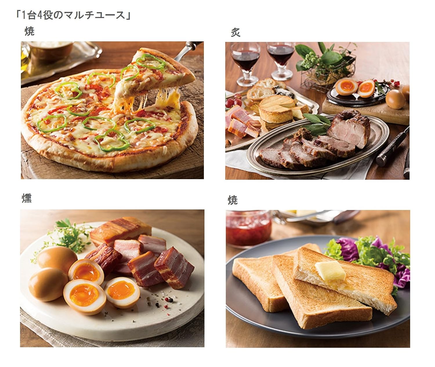 オーブン・グリル・トースト・燻製ができる、1台4役