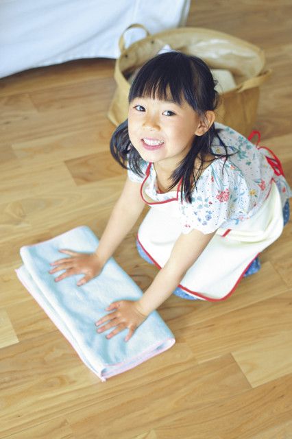小さな子どもでも取り組みやすいのが、洗濯物をたたむというお手伝い。「洗濯物は乾いたら、たたんでしまう」という、生活の基本を身につける機会にもなります。たたみ方は家庭によって違うので、おうちのやり方でOK!