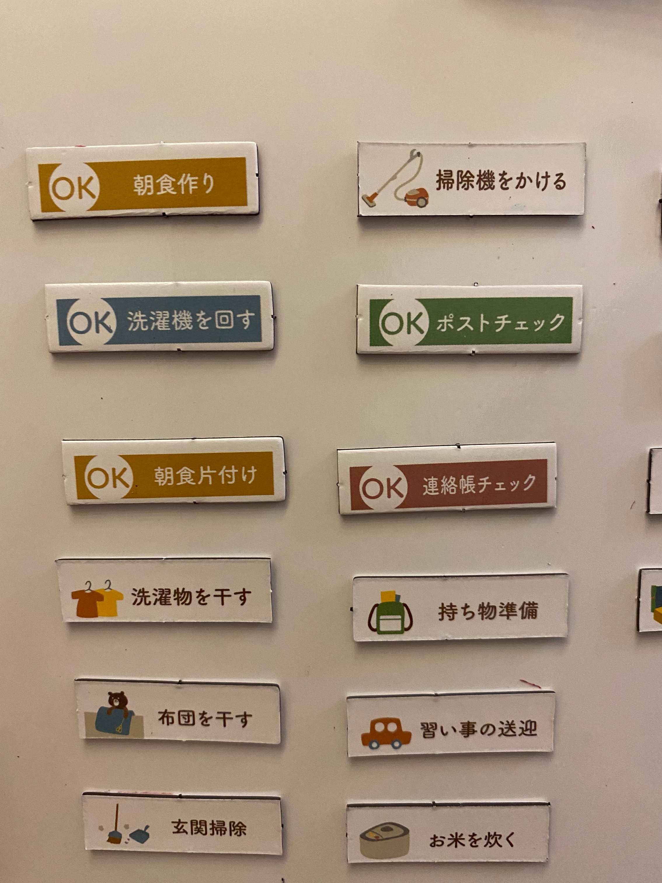 主婦が毎日やる家事のマグネットばかりなので、To Doリストのようにして使ってもいいし、家族で役割分担する為にも使えるしいろいろな使い方が出来そうです。