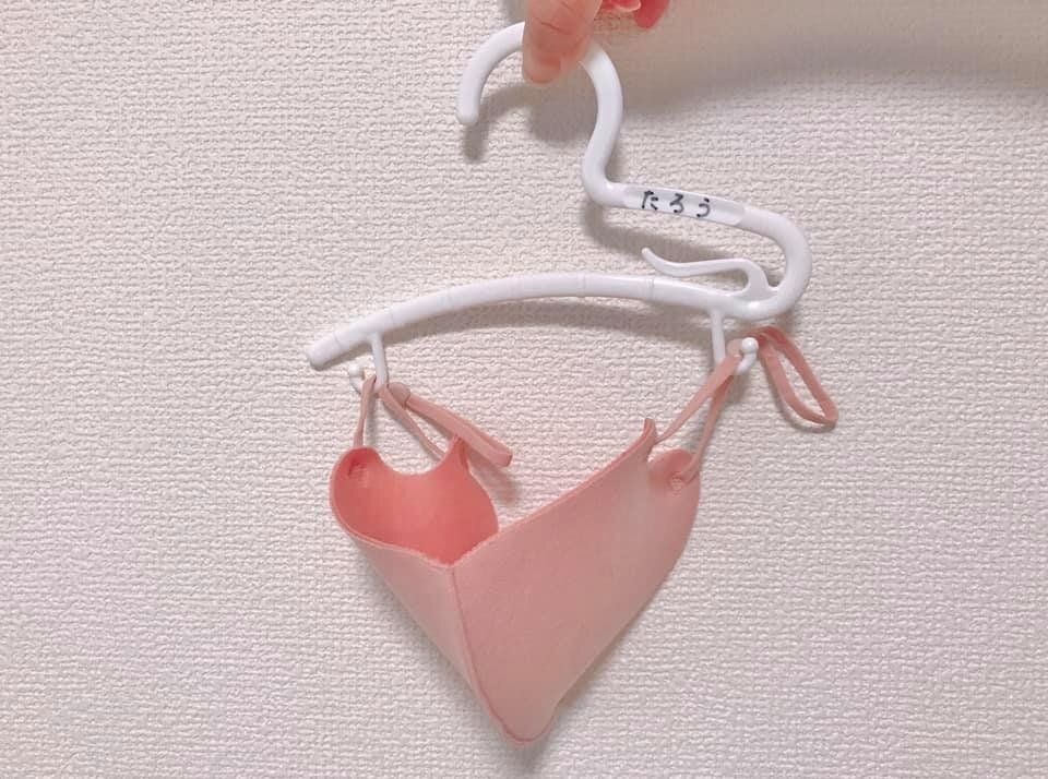 洗濯ばさみにぶら下げると伸びてしまったり、ピンチの跡がついたりしがちなポリウレタンのマスクでも、このマスクハンガーなら心配ありません。