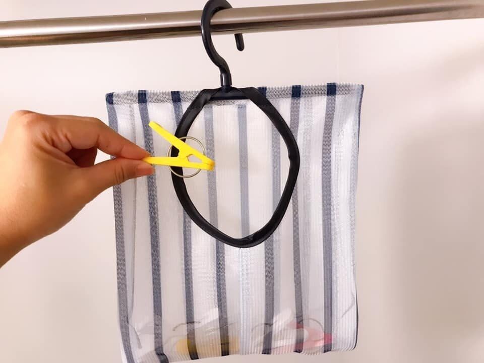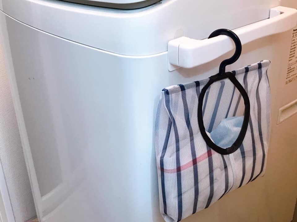 メッシュ素材で通気性もよいので、洗濯ネット入れとして、洗濯機の横に引っかけると洗濯仕分けにも便利。