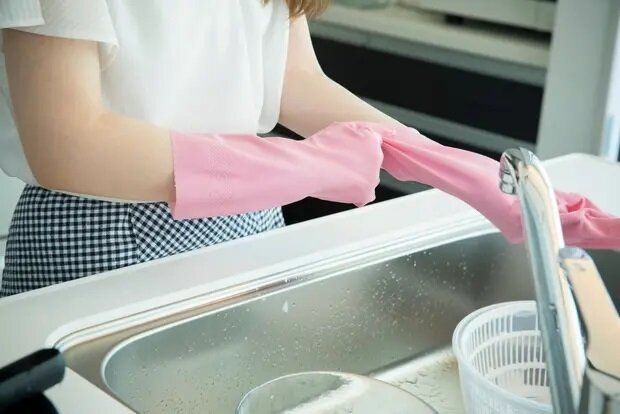 直接素手で皿洗いするのは控え、ゴム手袋で手肌を守りましょう。