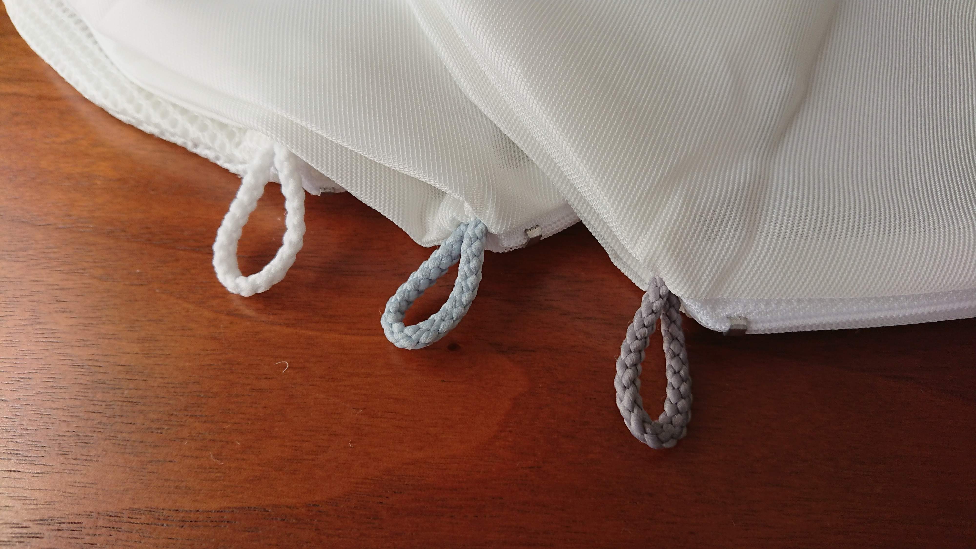 ひとつの家庭で複数使うことも多い洗濯ネット。今回紹介した無印良品の丸型洗濯ネットは、色違いのフック紐がついているので、わざわざ広げなくても違いがわかりやすいですね。