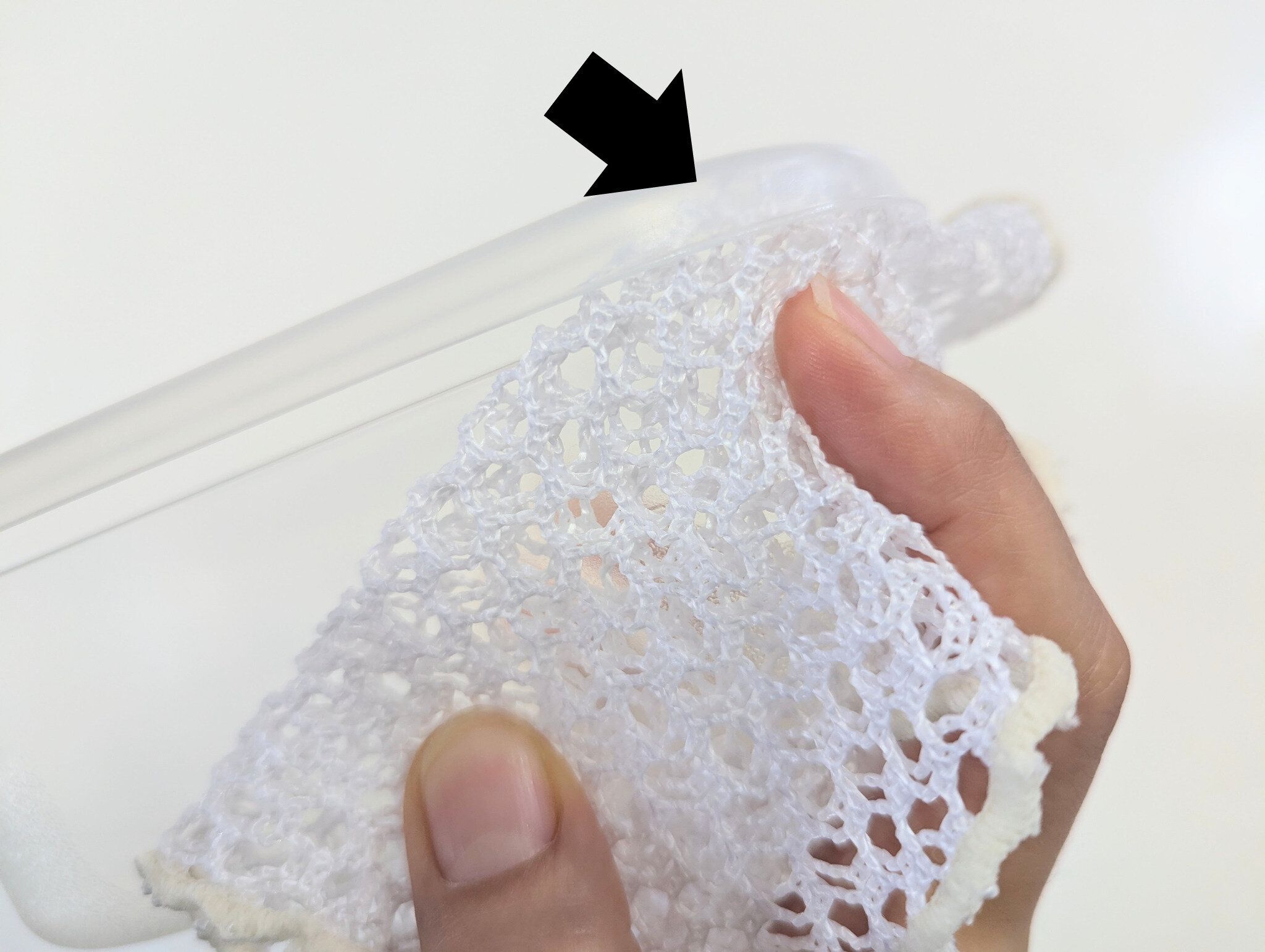 そんなリスクを減らせるのが、あみたわし。編み目についた汚れはサッと洗い流せて、内部に汚れが残ることもなく、「菌のエサ」がついたままになりません。布状で薄いため、水切れも抜群。ぎゅっと絞ればすぐに乾くので、菌が好む栄養分と水分を寄せつけにくいんです。