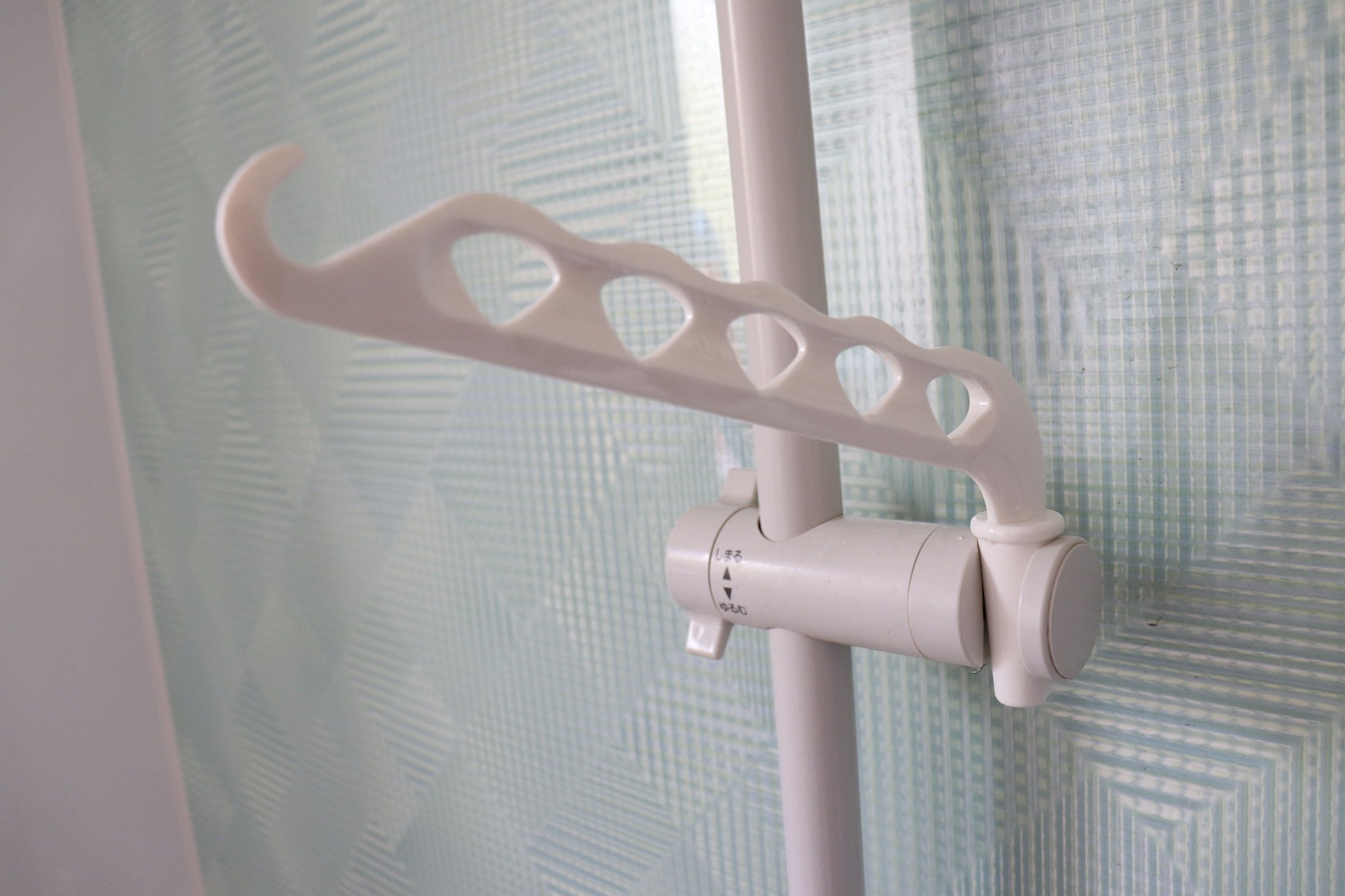 使い方も簡単で、お家にあるシャワーホルダーに引っかけるだけ!浴室乾燥機などがある家はハンガーパイプもあったりしますが、これならシャワーさえあればどこでも使えます。