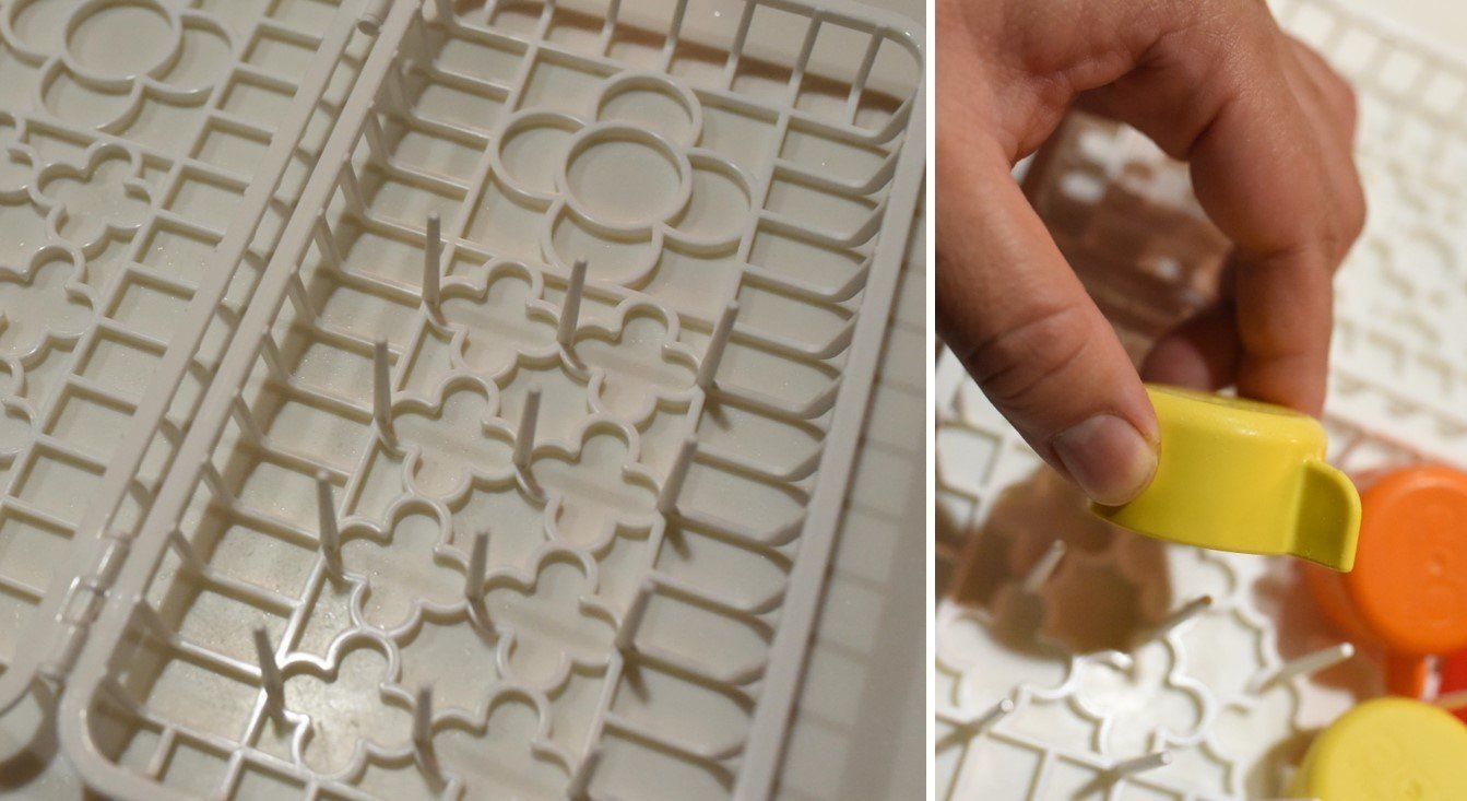 バスケットに小物を入れたら、蓋を占めて、食洗機に入れるだけでオッケー。写真ではグラスを入れる網の上に置いてみました。