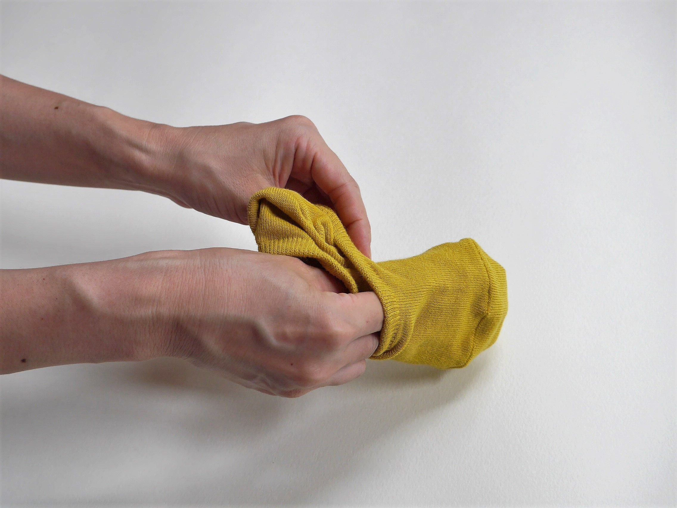 型崩れを防ぐ靴下のたたみ方手順4:外側のつま先部分を、外側のはき口の中に入れ込みます。