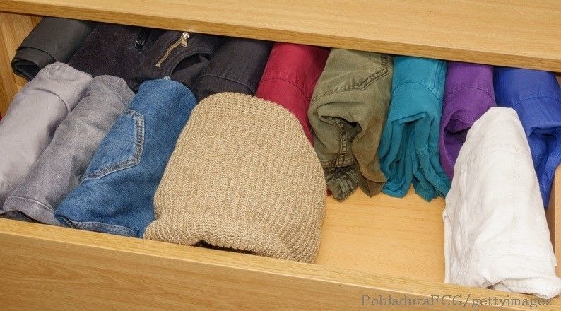 衣類は収納ケースやたんすの引き出しに立てて収納すると、物の量や種類が把握しやすく取り出しやすいのでおすすめです。ただし、ワイシャツの場合、立たせて収納するために何枚も詰め込むと、圧迫されてしわや形くずれの原因に。