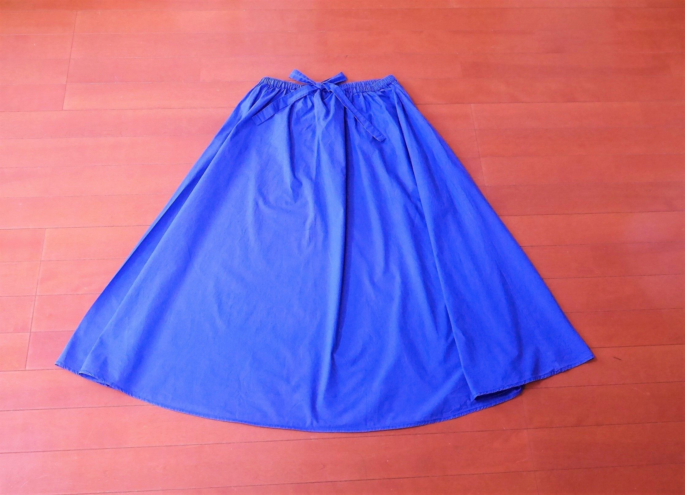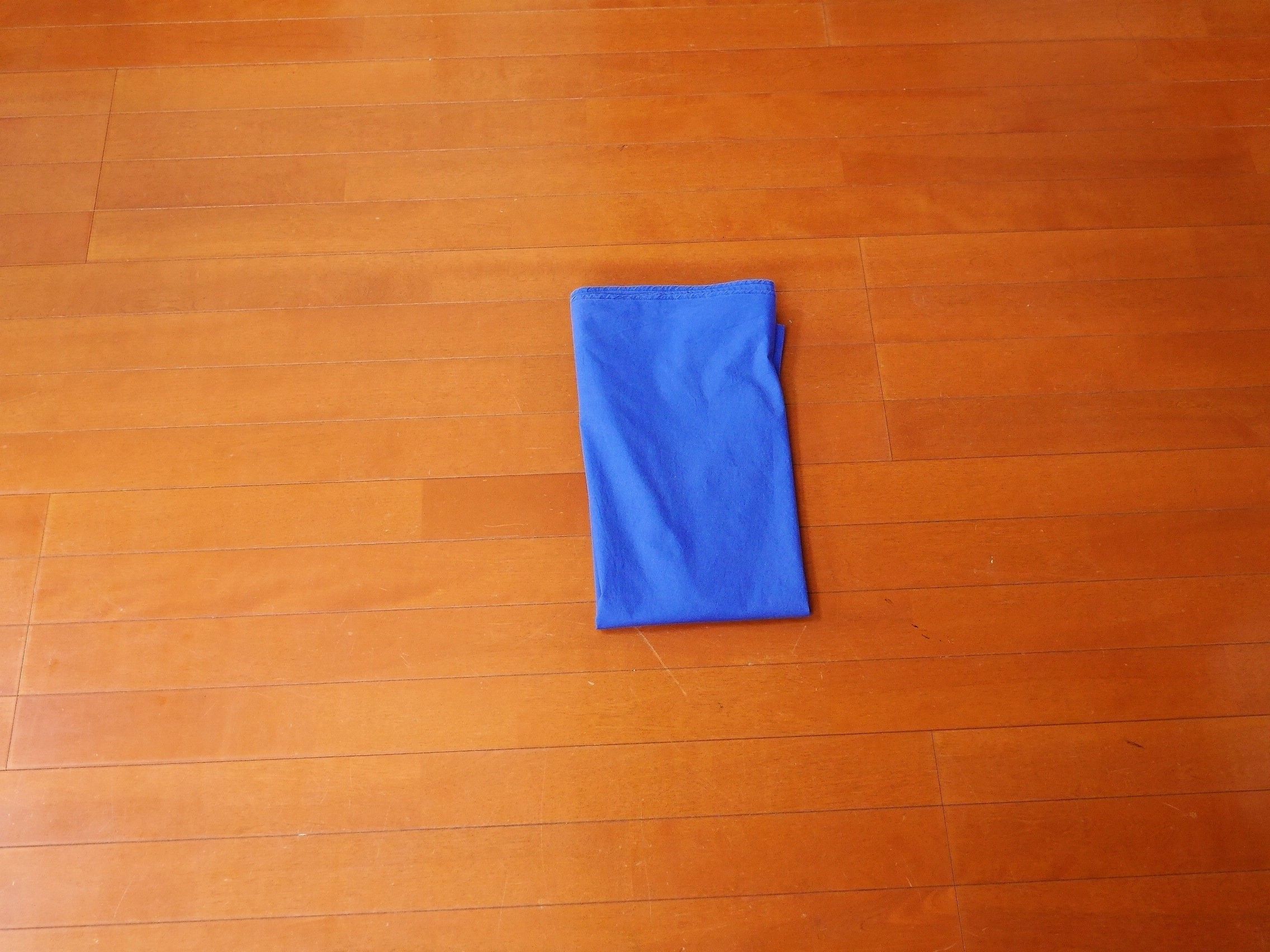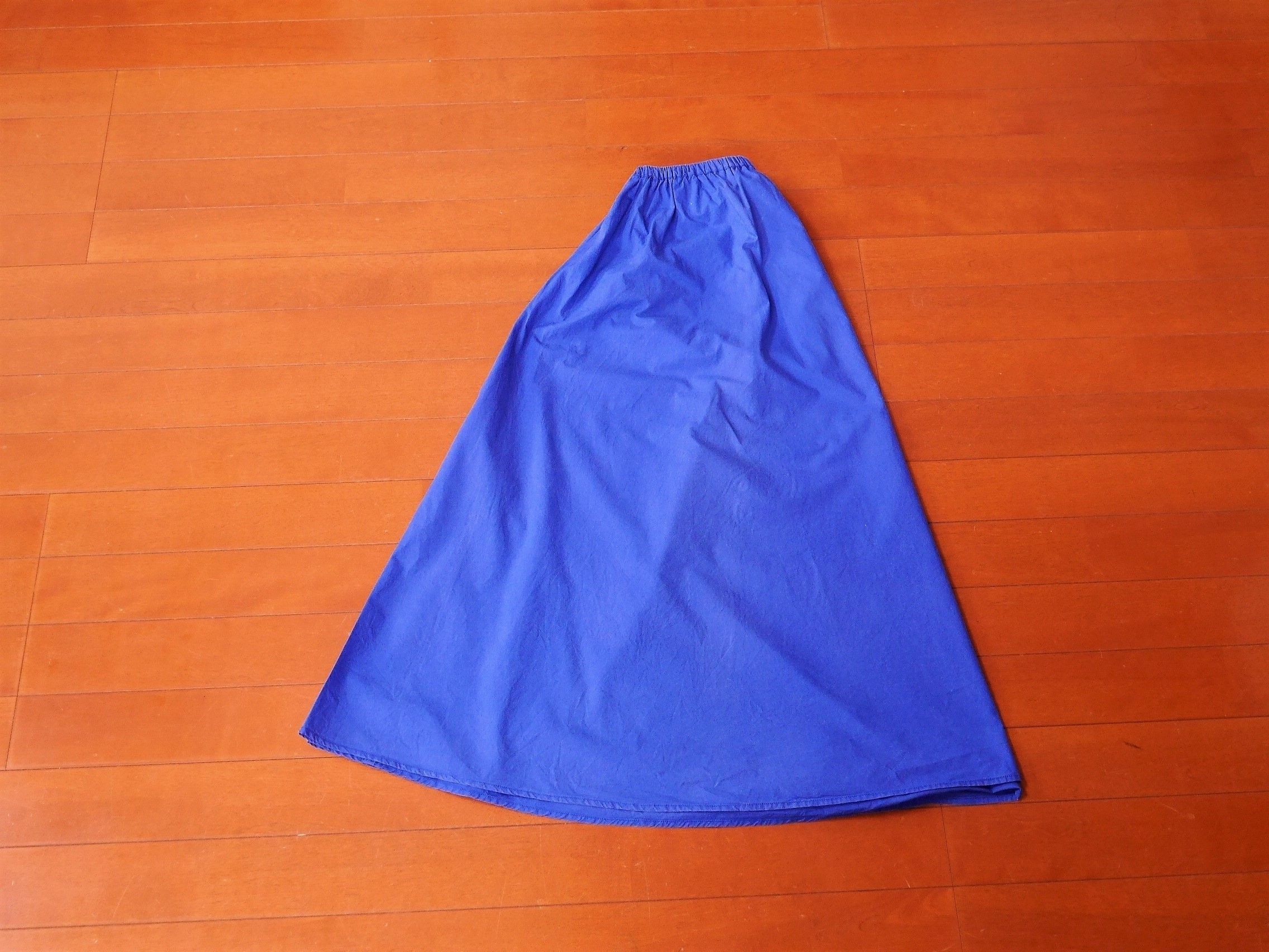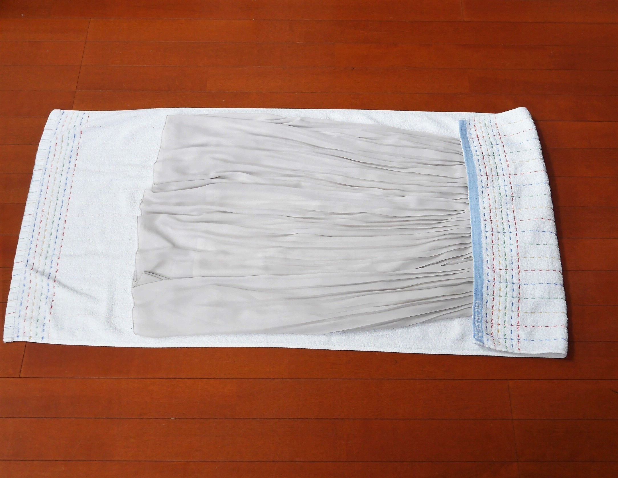 1.床にバスタオルを広げ、その上にスカートをのせて形を整えます。