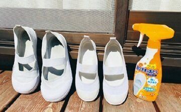 1週間の汚れがついた上履きがゴシゴシいらず&日光で白くなる!