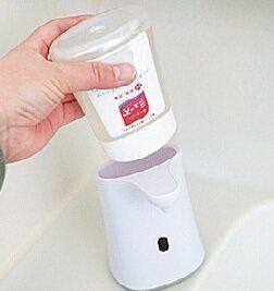 手をかざすと自動で泡が出てくるソープ。殺菌・消毒だけでなく保湿成分も配合♪