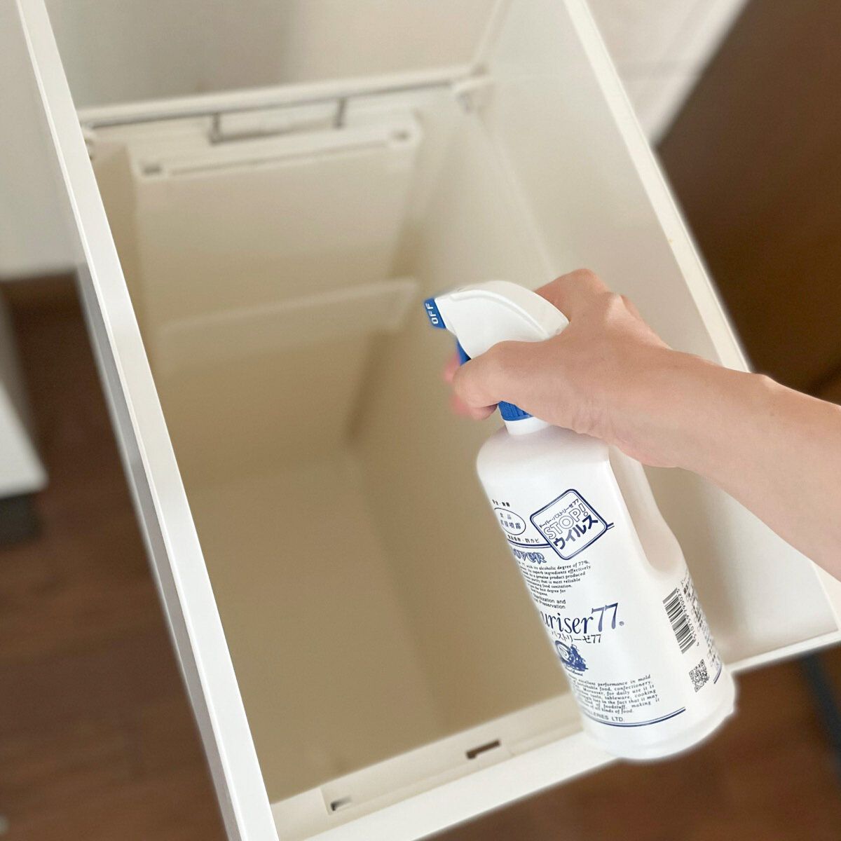 毎日使うゴミ箱の内側はもちろん外側も意外と汚れたりします。ゴミ出しで空っぽになったついでに除菌スプレーで拭き取るだけなのでお手軽です。