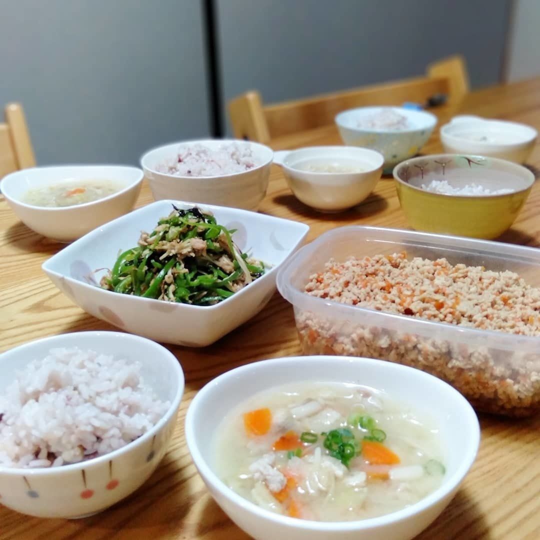 鶏そぼろの中に細かく刻んだ人参を入れ栄養と量のかさまし!ふりかけ代わりになります。無限ピーマンの中には塩昆布を入れて絶品おかずに!おいしく節約できるレシピです。
