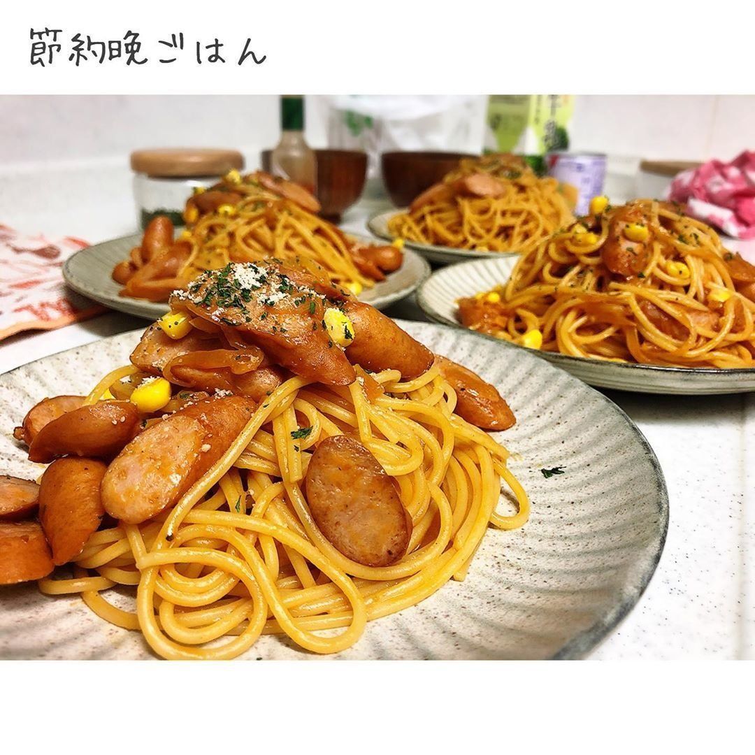 パスタ麺、ウインナー、コーンと少ない材料でつくれるナポリタン!少ない材料で簡単につくれるのに子どもから大人まで愛される料理です。これ一品でOKなのもうれしいですね。