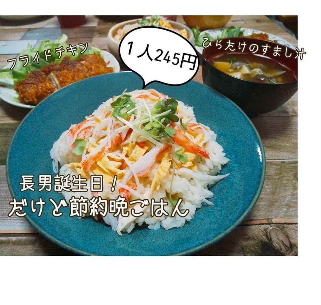 お祝いごとにピッタリのちらし寿司は、酢飯に錦糸卵やカニカマ、かいわれを用意するだけでできあがり!生魚を使わなければ食費を抑えられます。小さなお子さんにもおすすめです。