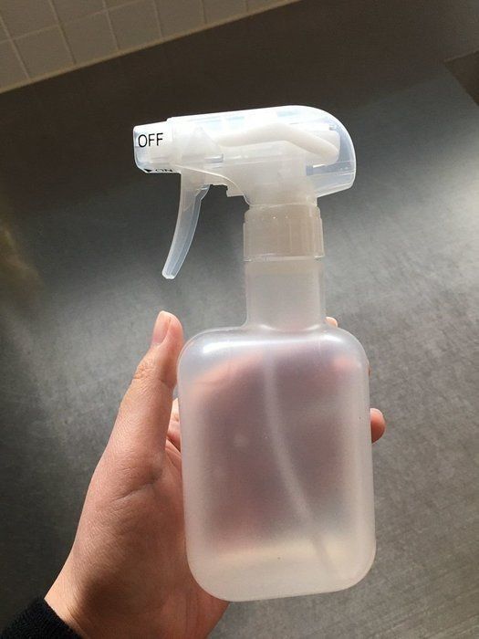 三角園いずみさんは、家じゅうの汚れをセスキ炭酸ソーダ水1本できれいにしているんだそう。セスキ炭酸ソーダはアルカリ剤のひとつで、高い洗浄力を持ちながらも白残りせず、界面活性剤不使用なナチュラル洗剤。スプレーボトルの中に水500ml、小さじ1杯の粉末を入れて混ぜ、気になる汚れに直接吹きかけて使います。