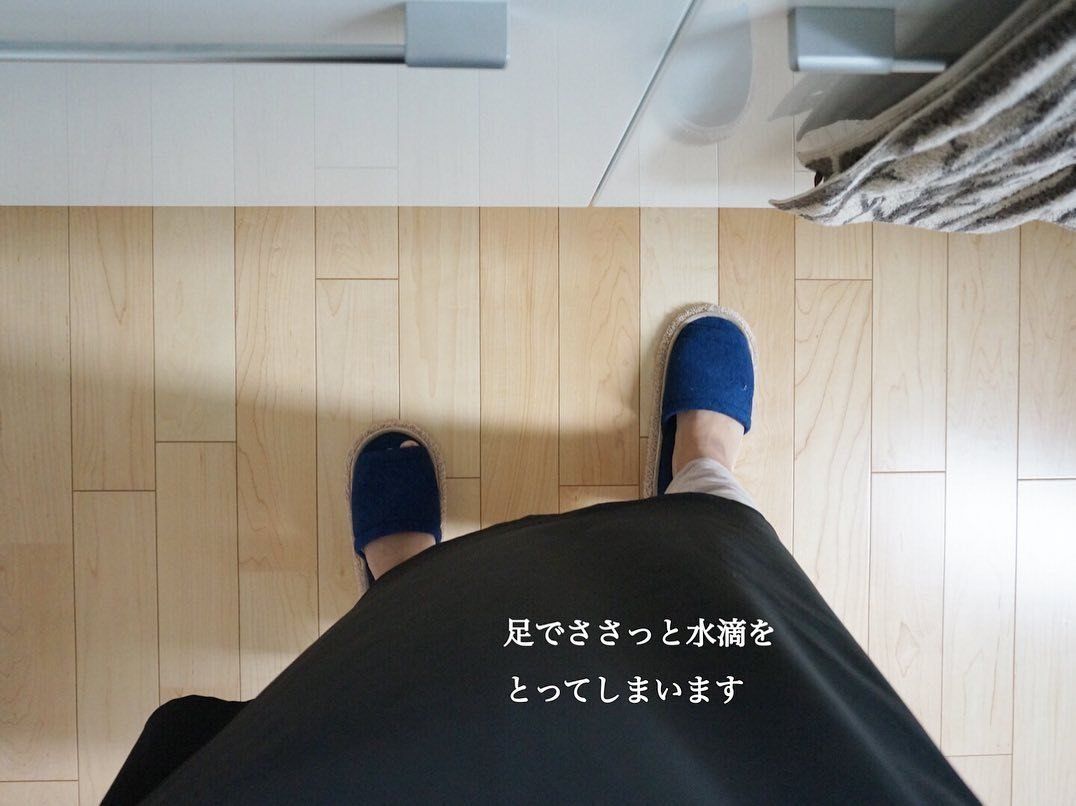 kayo.home00さんはキッチンマットをなくしました。かわりに、汚れをおとし、ほこりを吸着してくれるスリッパで、飛んだ水滴などはササッと拭きとるそう。掃除もラクになったし、見た目もすっきりとしたと大満足。このスリッパ、洗って何度も使えるのだとか。活用してみたくなりますね。