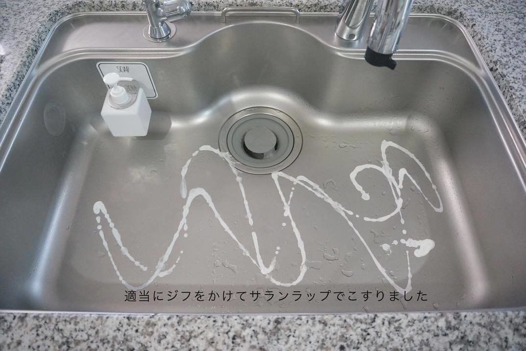 kayo.home00さんがシンクをきれいにする方法は、洗剤をふりかけてラップでこするのだそうです。洗い流したあとは、乾いたタオルで水分をふきあげるだけ。時間がかからずに、手軽にきれいにできるそうですよ。ラクにきれいにできる掃除法、参考にしてみてくださいね。