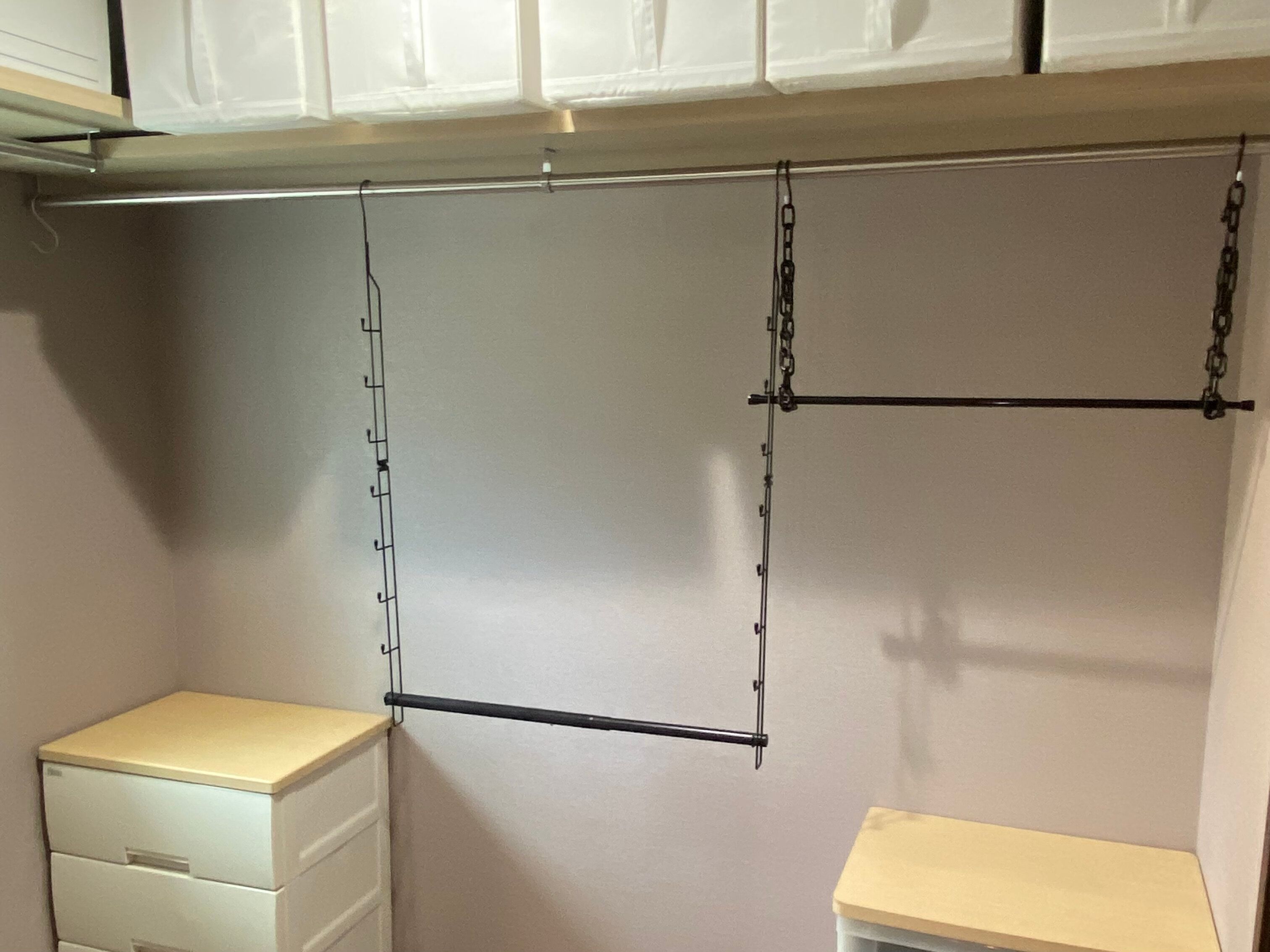 引き出しに畳んで収める収納から、畳まずハンガーにかける収納にシフトしました。