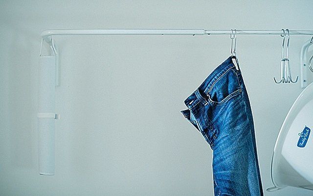 毎回洗濯しないけど、よくはくジーンズはそこら辺に〝ちょい置き〞しがち。脱衣所にフックをつけて、脱いだらそこに引っ掛けるルールにしたら、散乱がなくなりました。(インスタグラマー emiさん)