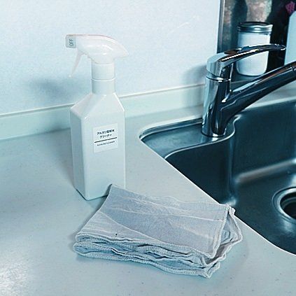 「掃除用具は、取ったり戻したりが面倒。そばにあれば、汚れに気づいた瞬間、サッと落とせます」。余裕があればシンクと蛇口を洗剤で洗い、IHまで拭き上げ。総所要時間、ここまでやって驚きの5分!