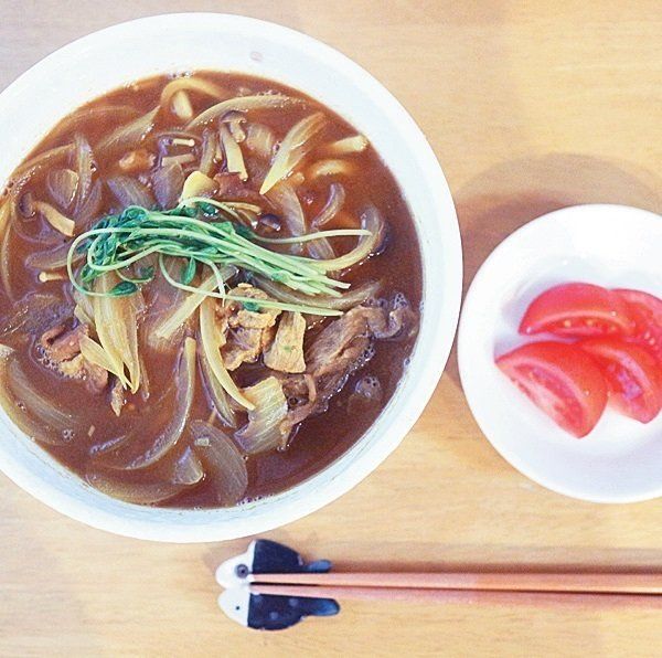 疲れたときは、夕食は簡単なものでOKと割り切る。「カレーうどんにはトマト、焼きそばにはキムチなど、調理なしでOKなミニおかずをプラス。クタクタにならないので、料理にストレスを感じません」。